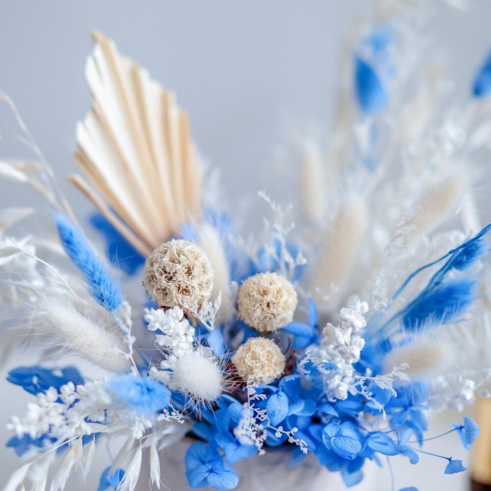 Упаковка дизайнерская – 1 шт.Лагурус – 2 шт.Скабиоза сухая – 3 шт.гортензия стабилизированная – 1 шт.сорго – 1 шт.мох ягель стабилизированный – 1 шт.лимониум стабилизированный – 1 шт.дикий овес – 1 шт.лист пальмы копье – 1 шт.кашпо керамическое д10 – 1 шт.