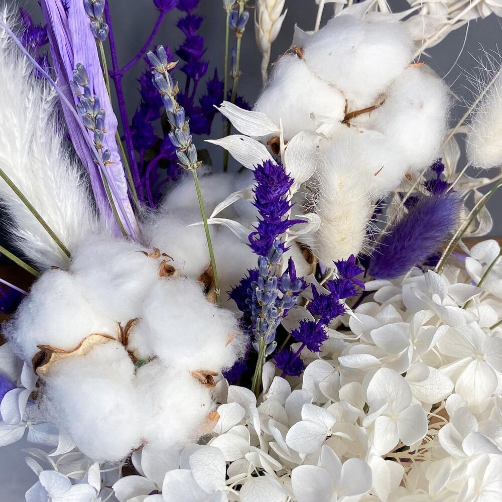 Композиция из сухоцветов в сиреневых оттенках