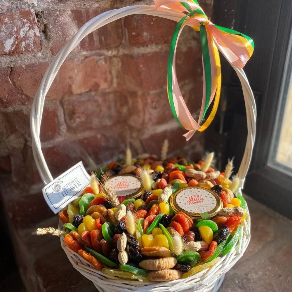 Корзина с орехами, сухофруктами и мёдом “Первые ростки”