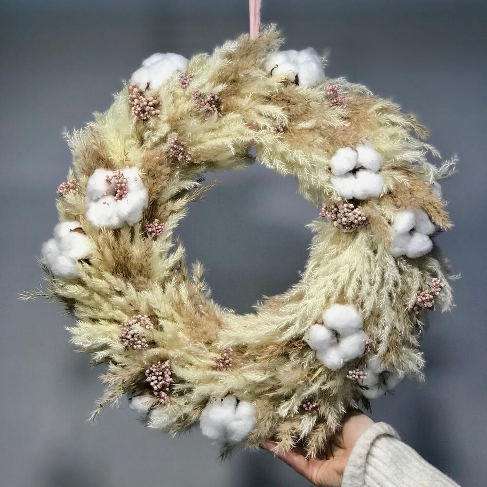 картаделия – 15 шт.Хлопок (сухоцвет) – 2 шт.Озотамнус розовый – 5 шт.