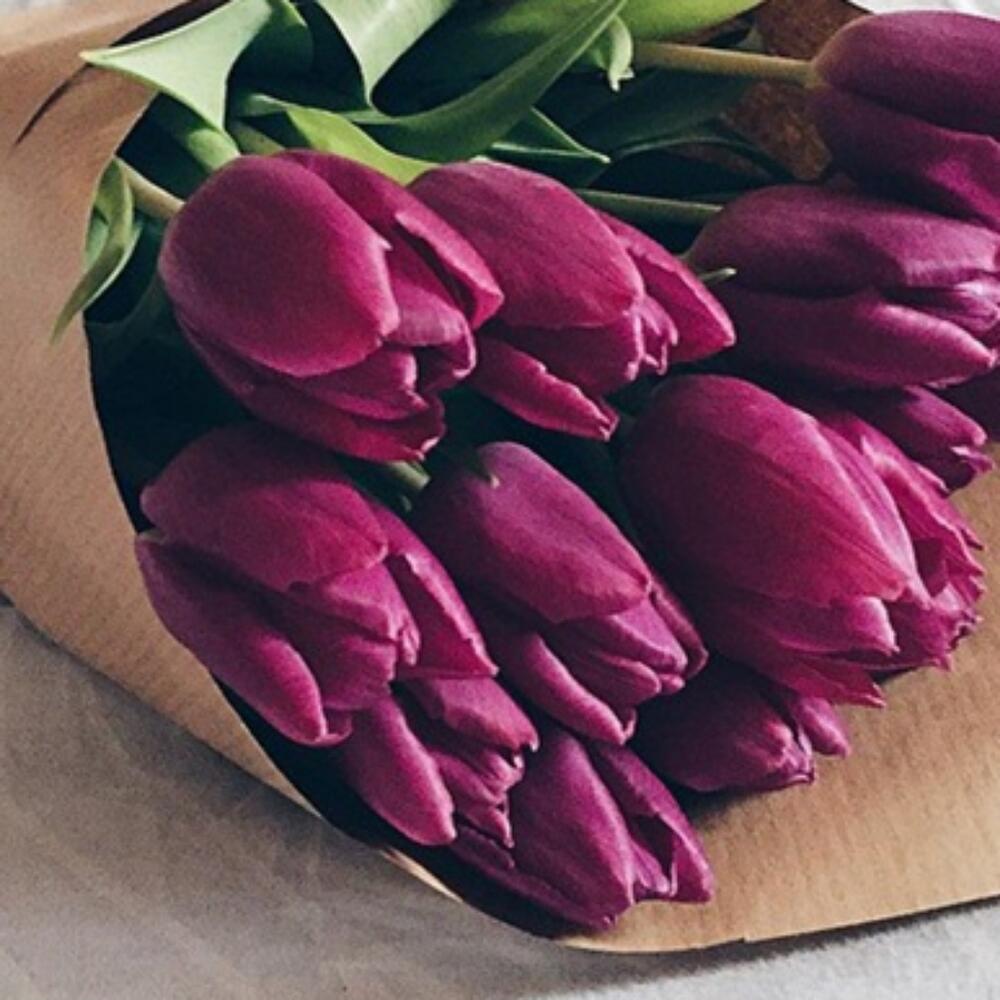 Тюльпан – 25 шт.Лента атласная – 1 шт.Крафт упаковка – 1 шт.