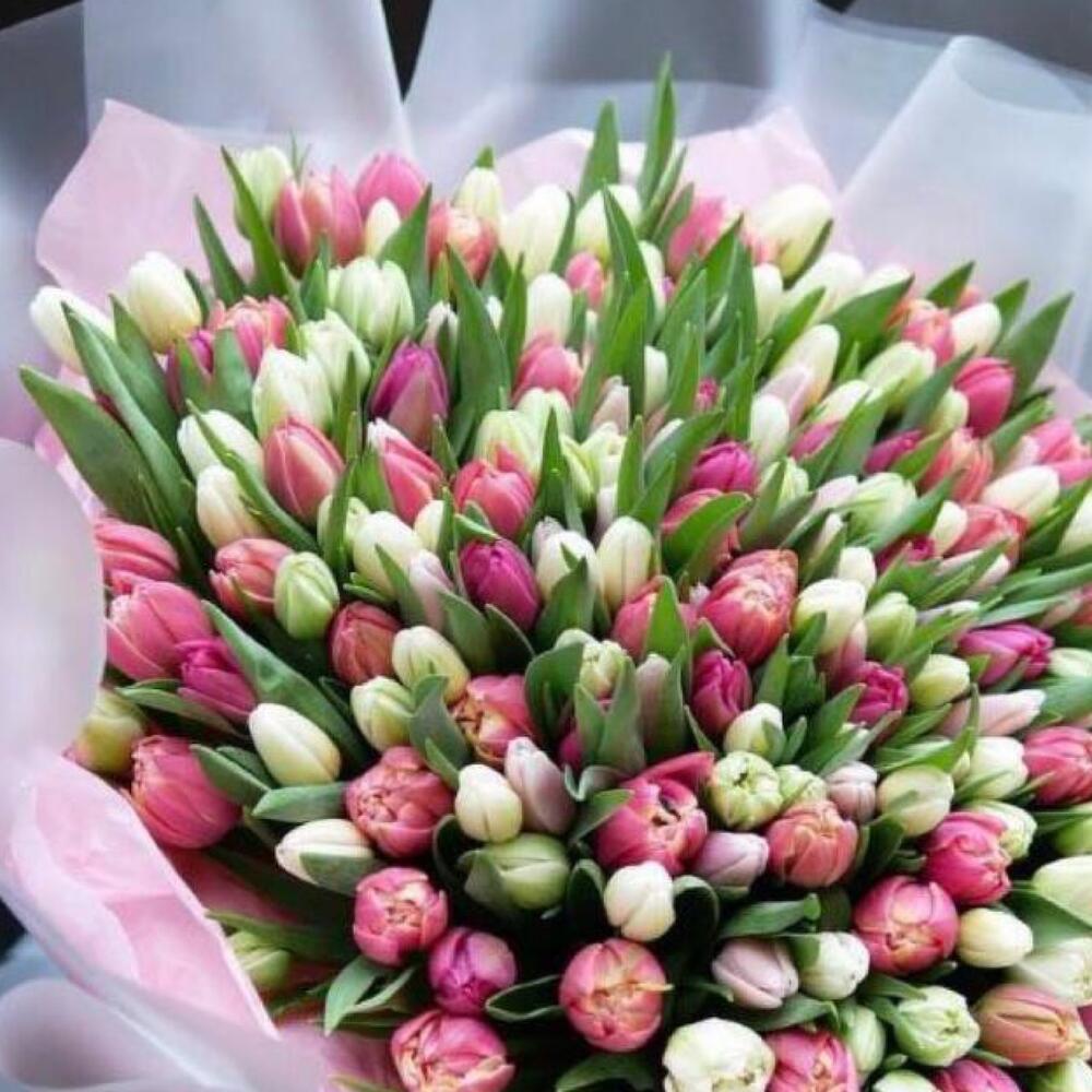 Тюльпан – 201 шт.Упаковка дизайнерская – 2 шт.Открыточка с вашими пожеланиями – 1 шт.инструкция по уходу за цветами – 1 шт.Лента атласная – 2 шт.хорошее настроение – 100 шт.коробка переноска – 1 шт.Кризал – 1 шт.