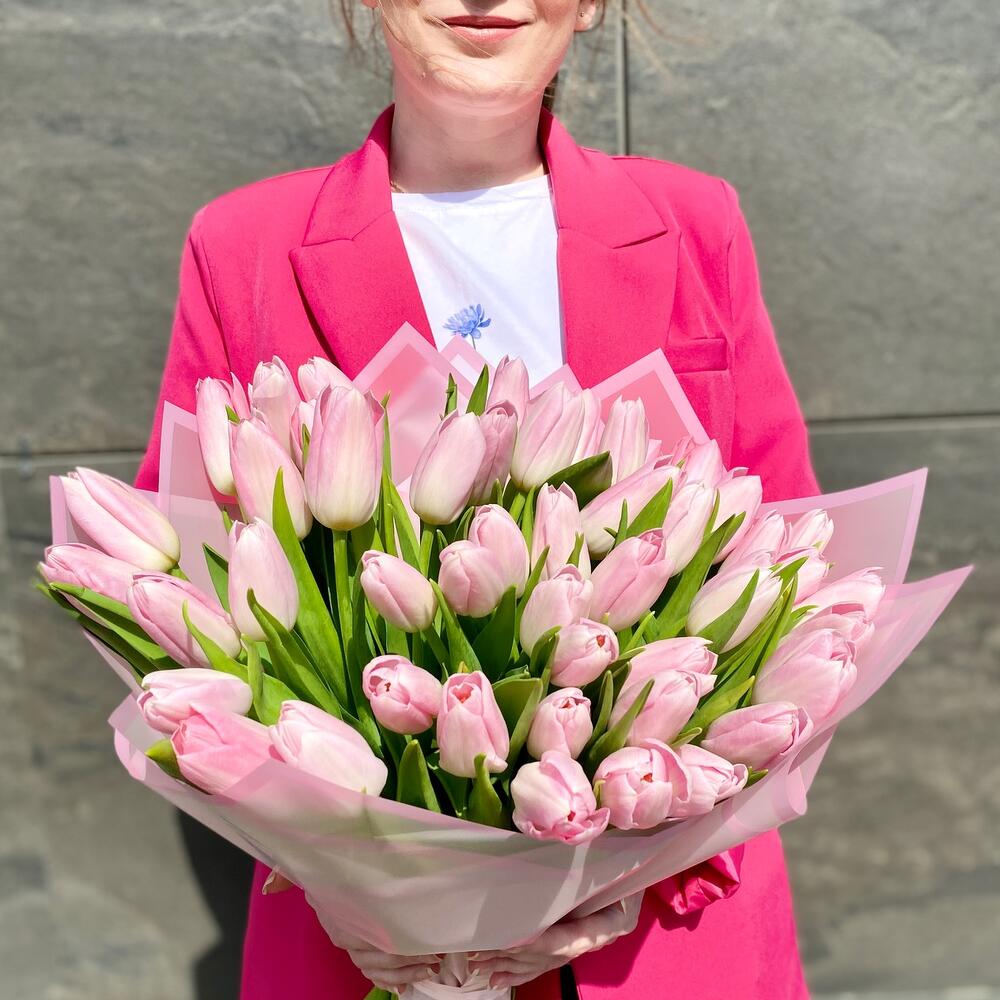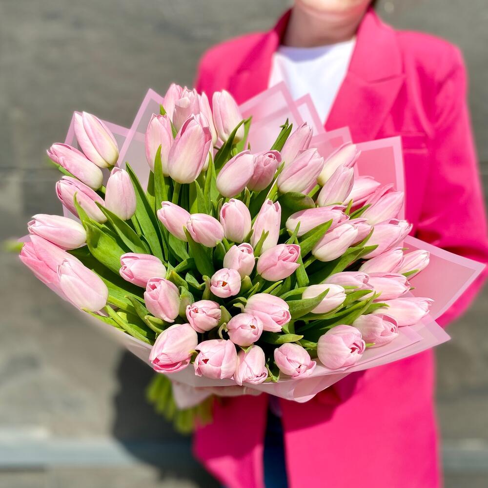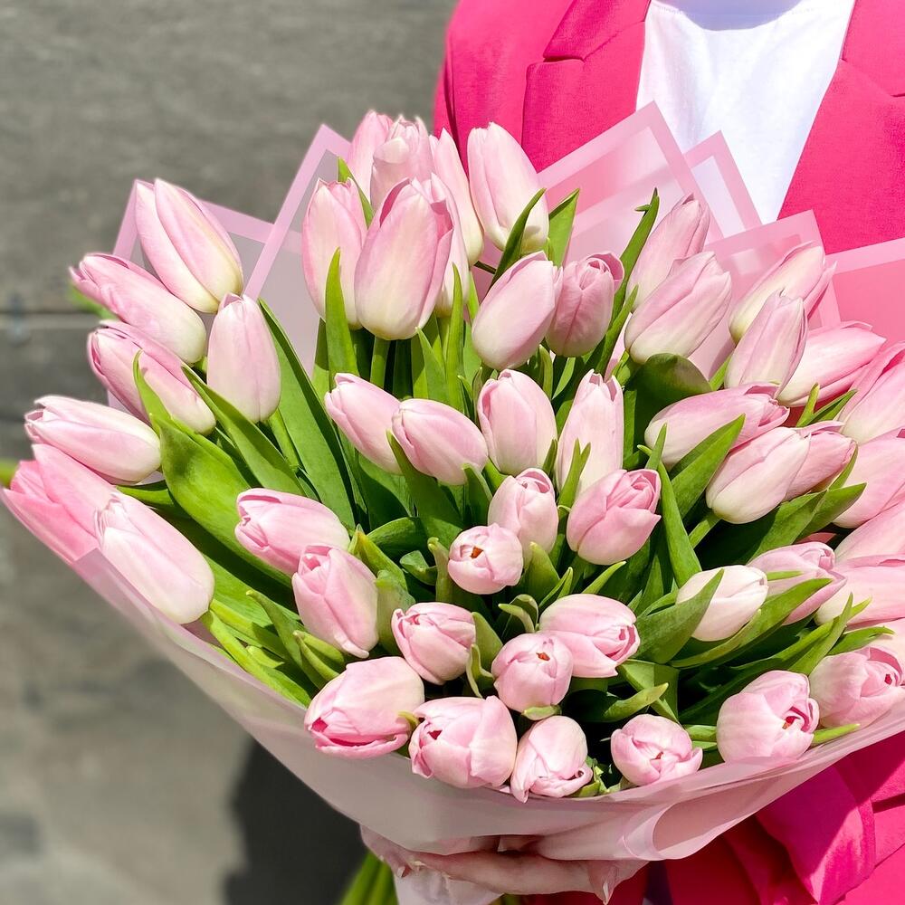 Букет премиум 51 нежно-розовых тюльпанов