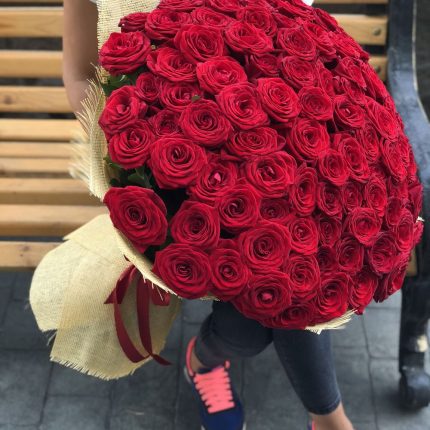 Букет из 101 красной и белой розы микс 35-40 см (Кения) в стильной упаковке