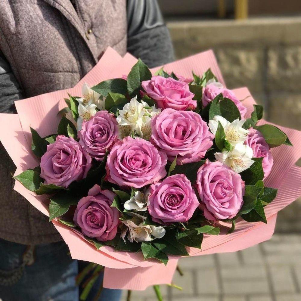 Альстромерии, Кустовые розы, Лизиантусы, Пионовидные розы, Розы, Ромашки